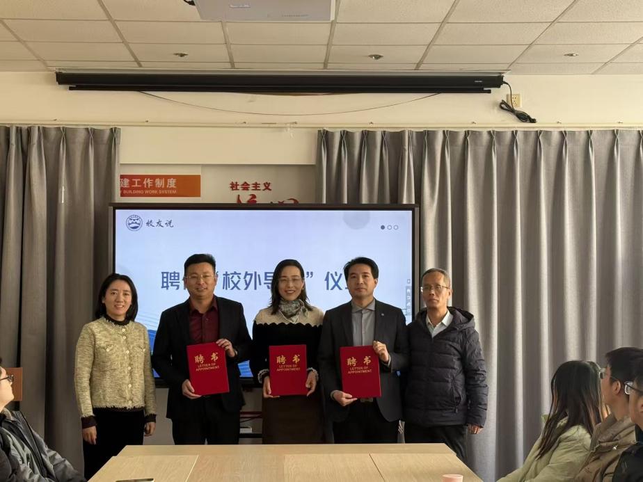 随后举行校外导师聘任仪式,赵斐斐书记与马永志主任为优秀校友颁发聘任证书。受聘校友表示,将切实履行导师职责,发挥行业资源与实践优势,在实习实践、职业规划等方面为学生提供指导,助力母校人才培养。